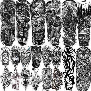 Diy Realistic Lion Temporary Tattoos For Men Women Adult Black Demon Compass Tattoo Sticker Fake Body Art Arm Tatoos Washable Temporary Tattoos Aliexpress